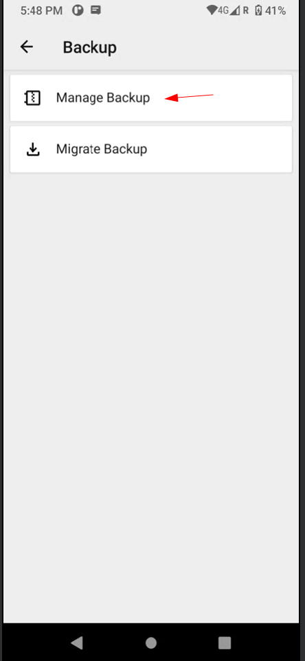 Step 2: Click on Manage Backups