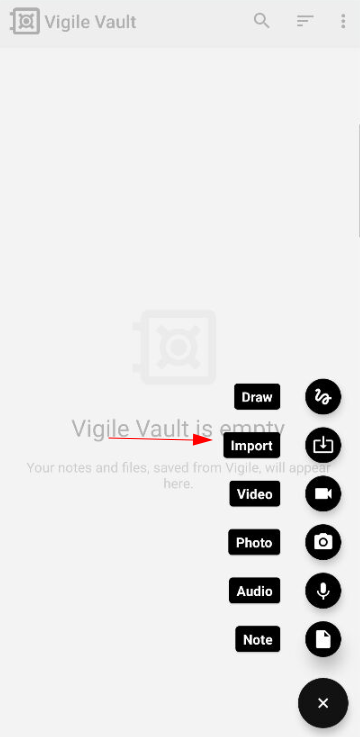 Step 1: Choose to import Files in Secure Vault