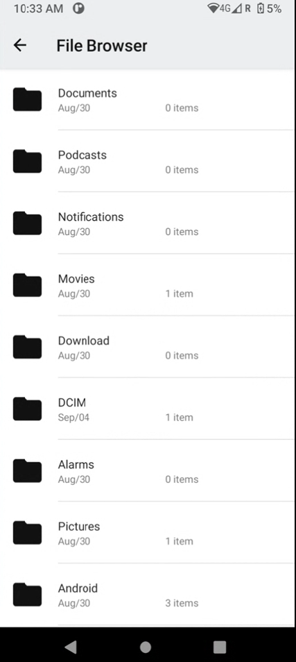 Step 2: You will get presented with the list of files on your device